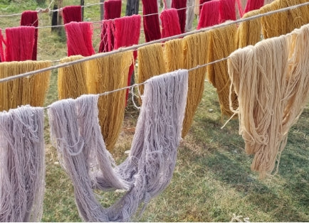Il transmet ensuite l’ensemble des éléments à nos ateliers qui vont pouvoir commencer la fabrication sur-mesure de votre tapis. Les fils de matières sont teints selon vos choix de coloris, puis tissés, noués ou tuftés à la main.
