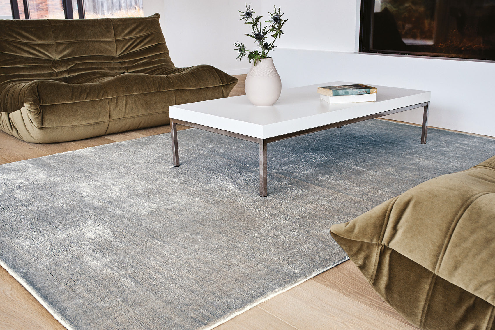 On voit la vie en ... pastel avec cette gamme de tapis unis en 100% Tencel à la brillance exceptionnelle! Une véritable douceur de vivre avec ce classique revisité par de délicats coloris d'écru cendré ...